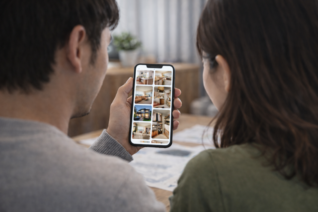 夜に子どもを寝かせたあと、スマホで理想のキッチンや間取りの投稿を保存したり、
