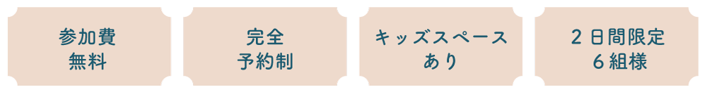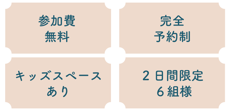 完全予約制・先着順1日3組様限定 / キッズスペースあり